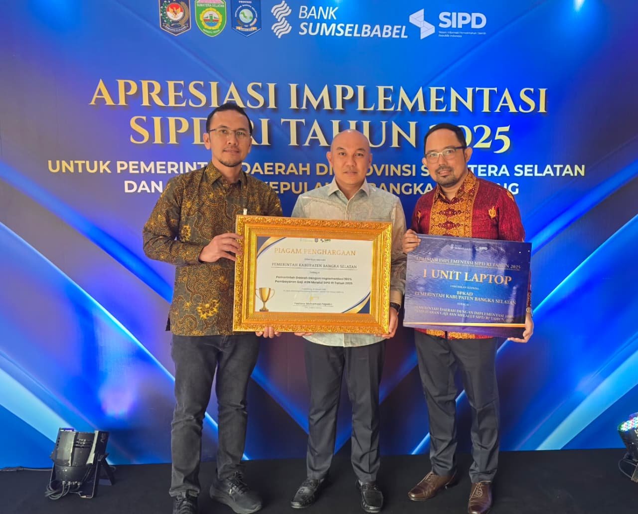 Penghargaan tersebut diterima oleh Sekretaris Daerah Bangka Selatan Hefi Nuranda, mewakili Bupati Bangka Selatan H. Riza Herdavid, pada acara Apresiasi Implementasi SIPD RI Tahun 2025 yang digelar di Ballroom Hotel Aryaduta Palembang, Kamis (29/1/2026).