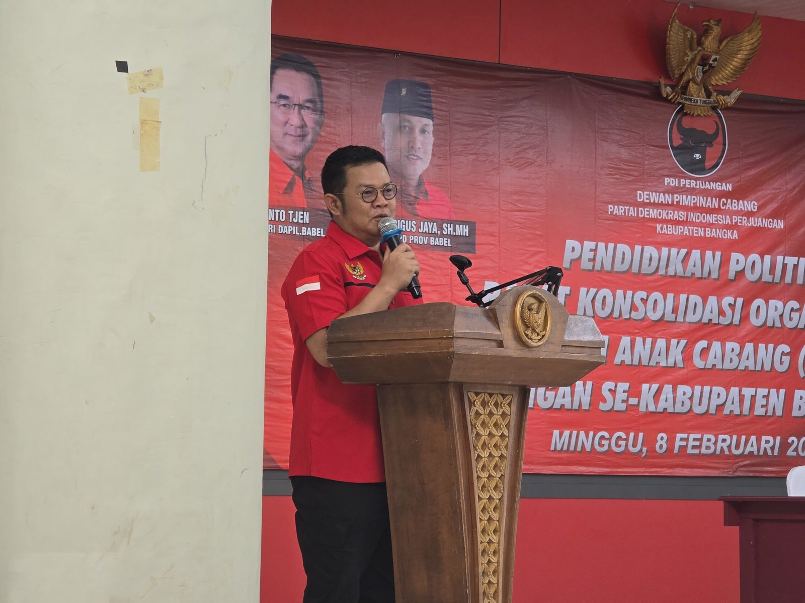 BABELINFONEWS.COM, TOBOALI  — Ketua DPC PDI Perjuangan Kabupaten Bangka Selatan, Riza Herdavid, menyampaikan pidato penuh semangat usai pelantikan Ketua dan Pengurus PAC PDI Perjuangan se-Kabupaten Bangka Selatan periode 2025–2030, Minggu (8/2/2026).